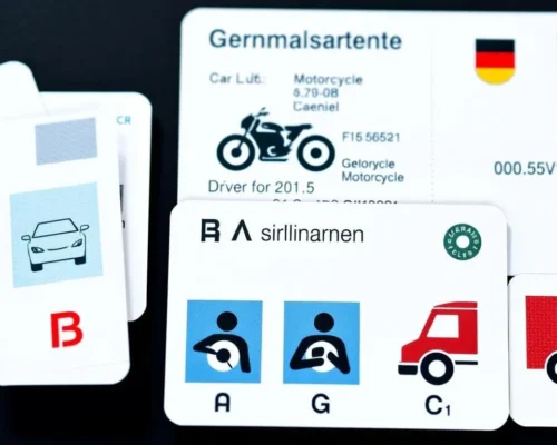 In Germany and the EU there are different types of driving licenses, each covering different vehicle classes. The most famous is the class B driving license for Passenger carswhich most people associate with the term „driving license“. There is also the motorcycle license (Class A – driving license), the truck driving license (Class C – driving license C1) and the bus driving license (Class D – driving license D1). Those driving agricultural vehicles often require a class L or T driving license.